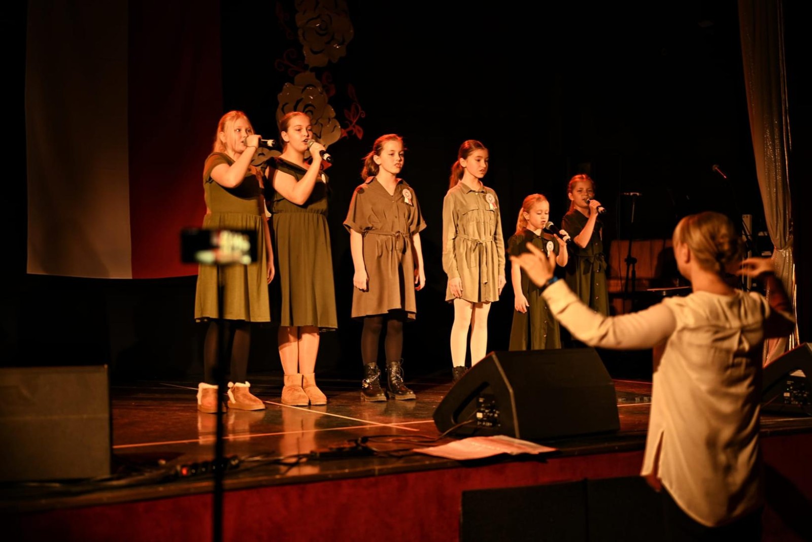 Wokalistki śpiewają na scenie z okazji Święta Niepodległości